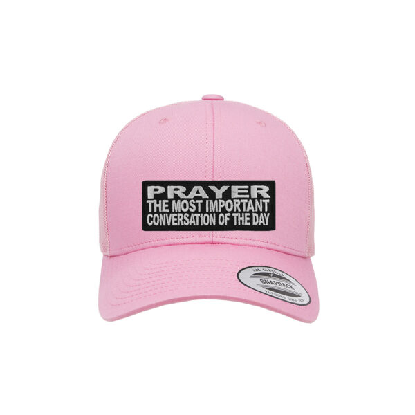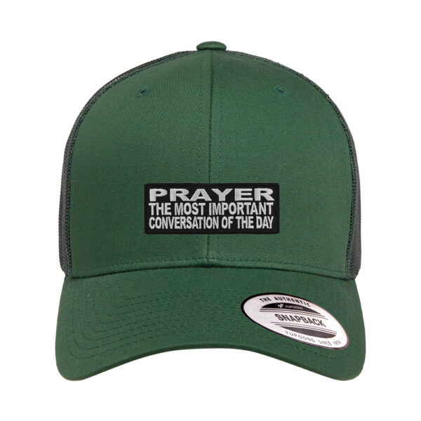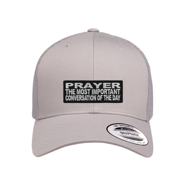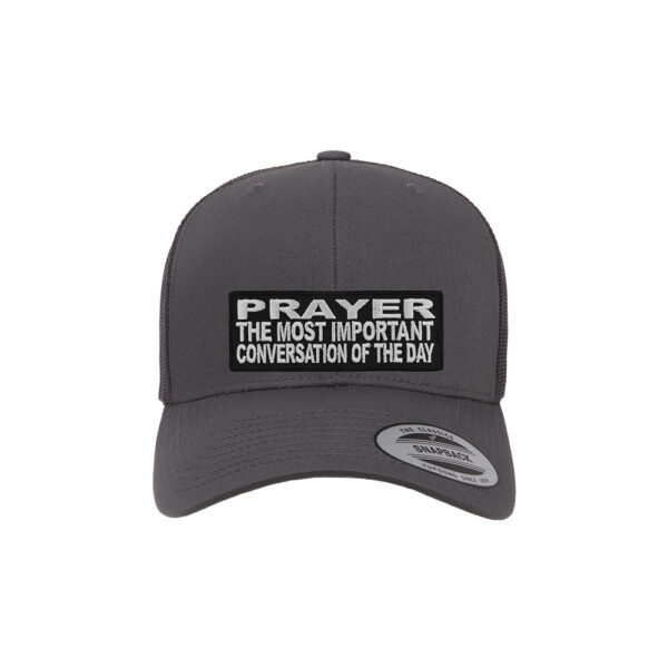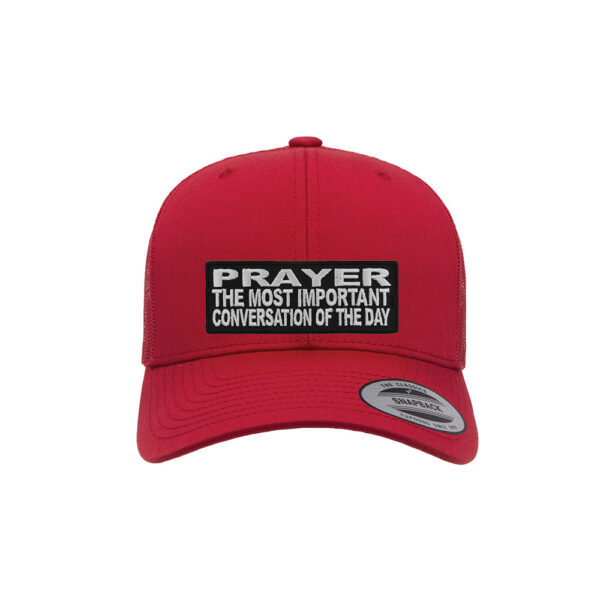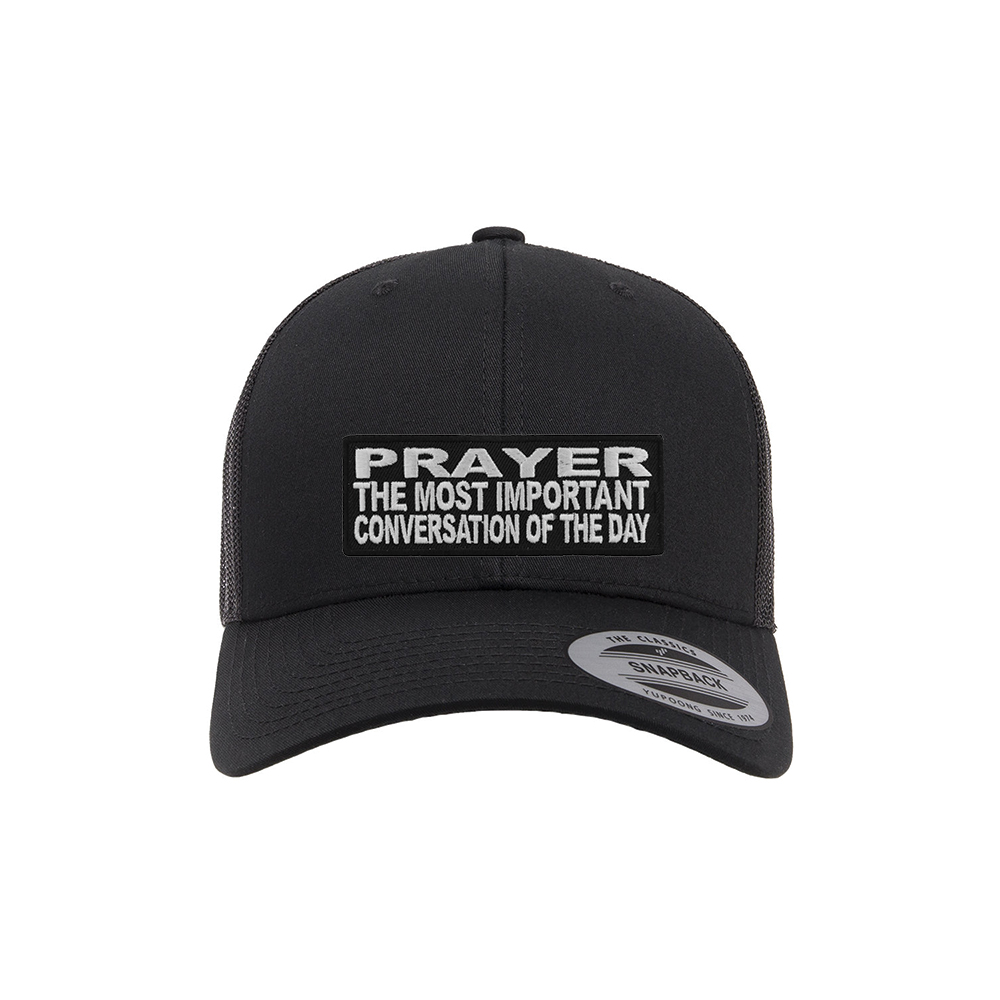 Start your day with purpose and faith with our Prayer: The Most Important Conversation of the Day Retro Trucker Snapback Cap. This motivational, faith-based cap is more than just a fashion statement—it’s a reminder to prioritize your spiritual connection with God every single day. Designed for comfort, durability, and bold witness, this cap is perfect for everyday wear, church events, or as an uplifting gift.